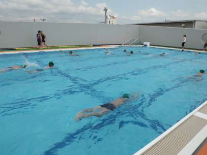 最近は雨の日や曇りの日が多いですが,晴れの日に入るプールはとても気持ちがいいですね。