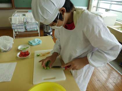 栄養教諭の中田先生がきてくださって、食育がありました。3組の畑で収穫したジャガイモを使って、調理実習をしました。