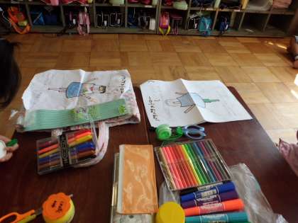 今日は,それぞれに思いの材料やペンを用意して取り組んでいました。