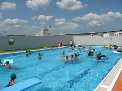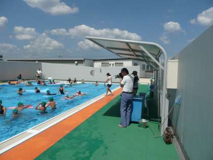 みんな笑顔で最高の水泳学習をしている様子を