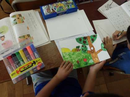 今,国語の学習で「お話づくり」をしています。