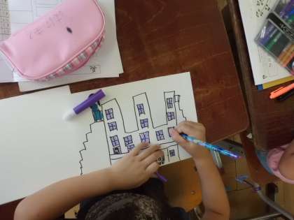 きれいな色と景色を考えるのも,楽しんでいるようです。