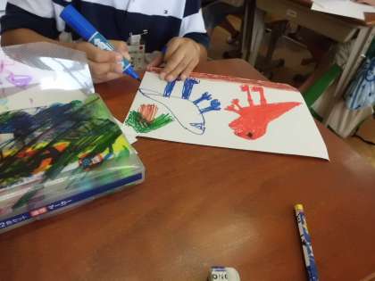 虫に名前をつけたり,冒険させてみたり…と,思い思いのストーリー展開を楽しんでいます。もちろん,お話に沿って絵も描いています。