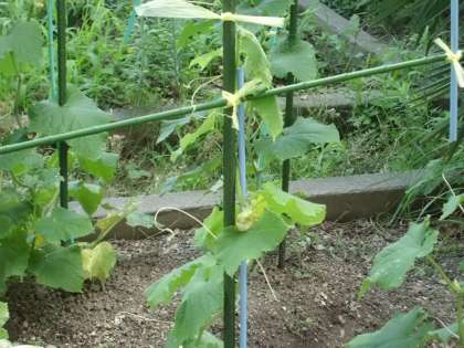 3連休の間に一層きゅうりのつるが伸びていました。「大きくなったのでうれしいなあ。」という声が聞こえてきます。