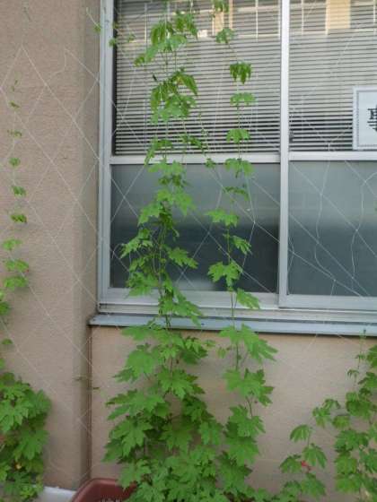 ゴーヤは5日間で60センチほど,上に上にのびて