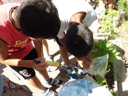 植物は日光に当たると二酸化炭素を吸収し,酸素を生み出すのか?ということを調べました。