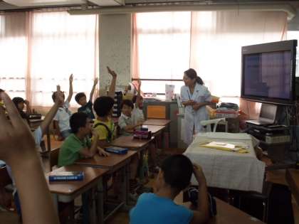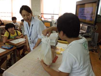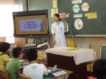 1日のおやつの量は200キロカロリーでこれは,子どもたちが大好きなポテトチップスの半袋,板チョコだと2分1枚だそうです。おやつのとりすぎには気をつけようと感じた子どもたちでした。