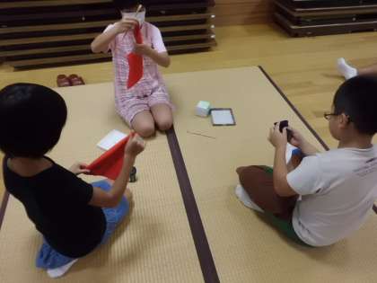 毎週水曜日の放課後は茶道の部活です。4年生も8人はいってお茶のけいこをしています。今日のけいこは『ふくささばき』です。グループで教え合いながら練習をしました。