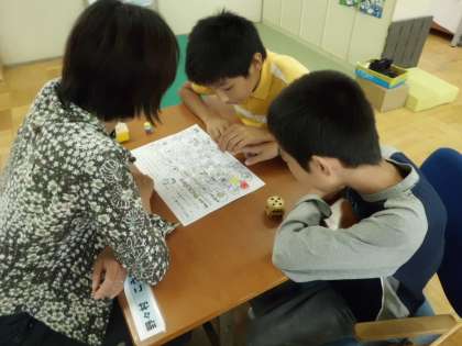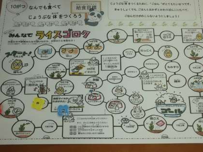 ライスゴロクという創作スゴロクで、みんなで遊びました。お米のことを勉強しながら、楽しく遊べます。楽しいですよ。