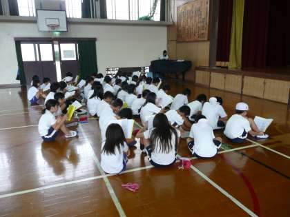 まず始めに,歌の練習です。みんなでピアノの