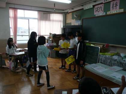 みんなの寄せ書きと写真が貼ってあるすてきなカードです。