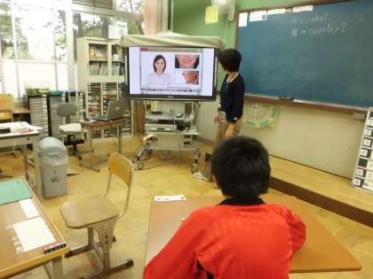 3組で英語の授業をしました。デジタル教材を使って、外国人のネイティブな発音を学習しました。