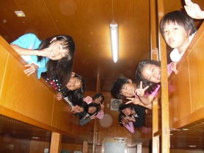 泊るところはバンガローです。2階のベッドに布団を敷きつめて,みんなで楽しいひと時を過ごします。1日目は,初めてのことでホームシックにかかってしまいなかなか寝られなかった子どもたちも,2日目は早い目にぐっすりお休みです。