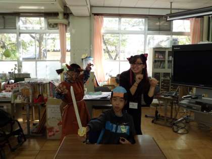 ALTのジェニファー先生とハロウィンパーティーをしました。みんなそれぞれの仮装をしました。