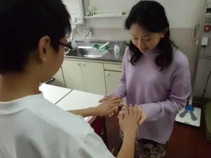 体重測定のあと,手と足の爪の点検を先生にしていただきました。