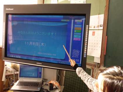 日直さんが,操作をしています。楽しい内容で,みんなの楽しみです。