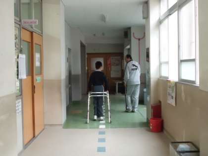 自立活動を頑張っています。正しい姿勢で歩く練習を頑張っています。