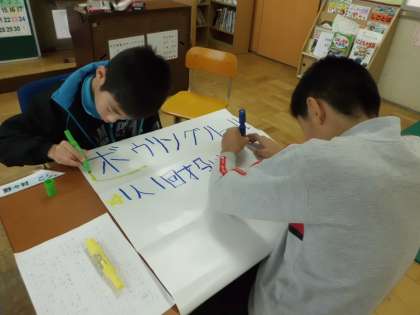 11月28日に行われる小中交流会の準備に取り掛かっています。リーグ表をかいたり、寸劇の練習をしたり頑張っています。