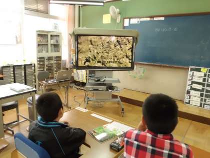 理科の時間に、デジタル教材で火山の力を学習しました。