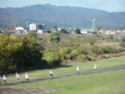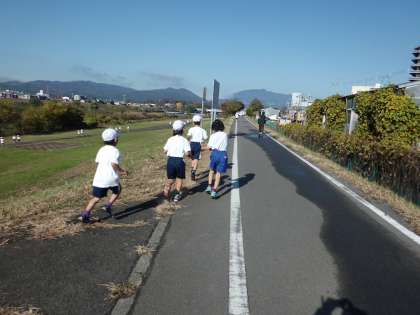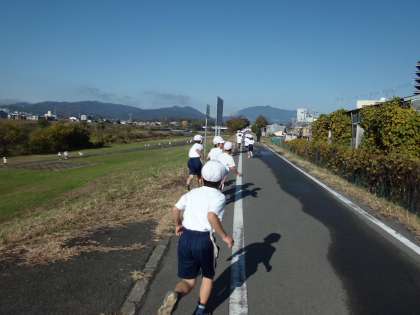 12月3日(月)の3〜4時間目に1・2年生合同で桂川の河川敷にマラソンの試走に行きました。お天気は良かったけれど,風が冷たくて「もう冬だなあ」と感じるほどでした。