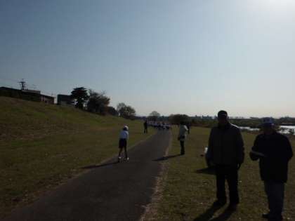寒いけれど,がんばって自分の記録を伸ばしたいと,それぞれが思いを持って河川敷まで行きました。着いたら,すぐに5・6年生がスタートして,ほどなく3・4年生もスタートしました。