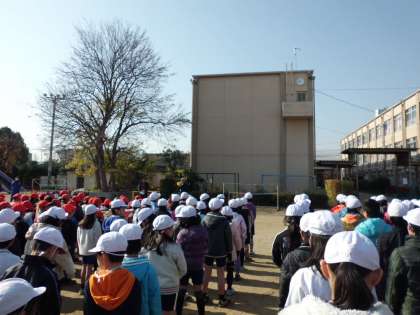 開会式の様子です。校長先生のお話をしっかり聞いているところです。