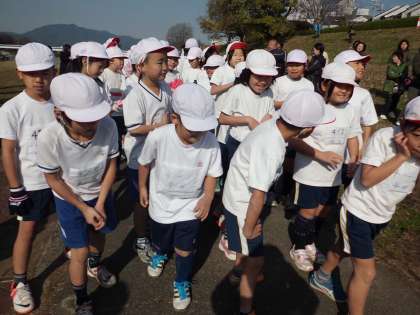 さあ,3・4年の出発です。みんな元気に走りだしました。15分間で2周(3100メートル)以上走り切った子どももたくさんいました。自分のペースで15分間走り通して,「楽しかった」という思いをもちました。