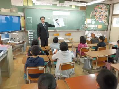 右京警察署の方が来てくださり,非行防止についてお話をしてくださいました。『やって良いこと悪いことを理解し,いつも正しい行動ができる人になろう。』をテーマにいろいろな角度からお話をしていただきました。「行動をする前によく考えよう。それには4つの観点から考えるとよい。1.自分がされたらきずついたり,こまったりしないか。2.お父さんお母さんなど大切な人をがっかりさせないか。3.人に迷惑をかけないか。4.法律やきまりをやぶっていないか。」子どもたちは,真剣に話を聴き,自分の心に留めたことと思います。