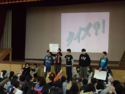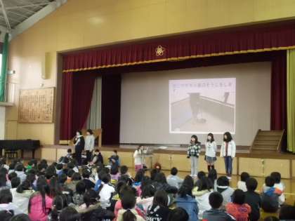 21日に児童朝会がありました。飼育委員会の5・6年生がウサギの名前紹介や飼い方について発表しました。