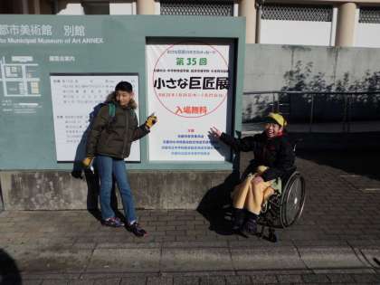 巨匠展の看板の前で、かっこつけて記念撮影しました。