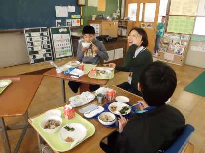中田先生をお迎えしての、交流給食がありました。とてもうれしすぎて、おしゃべりがとまりませんでした。とても楽しい時間でした。