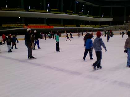 みんなリンクをスイスイと滑っています。転び方も上手になり,安全に滑ることができました。5年生,6年生に交じって滑り,とても楽しそうでした。スケートの楽しさを体験した4年生でした。