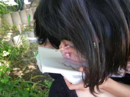 中間休みには,校庭に咲いた白い花を,懸命にスケッチしている姿を見つけました。