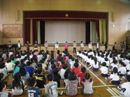 クラスを,学校を引っ張ってくれるお兄さんお姉さんを,まじまじと見つめる2年生の子どもたちです。