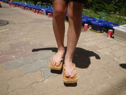 カラコロ…と音を立てながら歩く姿,素足で歩くのも健康によさそうだと眺めていました。