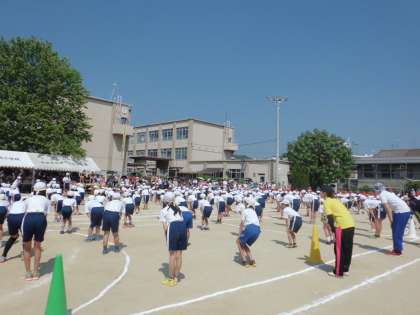 すばらしい天気のもと,運動会が行われました。4年生は,今年初めて,運動会の係活動に参加しました。全校行事の運営に参加することは,高学年の仲間入りです。みんな,張り切って自分の係の仕事に取り組みました。運動会終了の後始末まで本当にがんばりました。もちろん,100m走や学年リレーもがんばりました。学年リレーは,バトン渡しに力を入れてたくさん練習してきました。タイフーンは,3年生と力を合わせることにがんばりました。みんな,満足の笑顔の表情が見られた運動会でした。