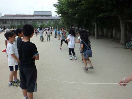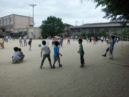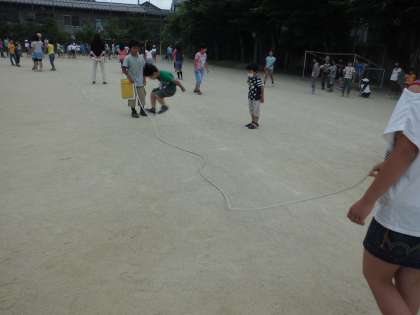今日は心の日,初めてのたてわり遊びでした。6年生が迎えに来てくれて,たてわりのグループで遊びました。大なわとび,「だるまさんがころんだ」,ドッジボール,おにごっこ・・・上級生と一緒に遊びました。上級生がやさしくしてくれました。とても楽しくて,来月のたてわりを楽しみにしている1年生です。
