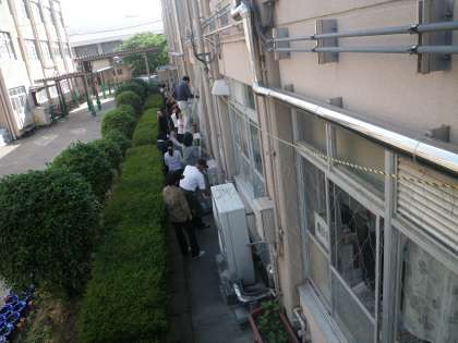 放課後には,地域の方と一緒に緑のカーテンの仕度をしました。