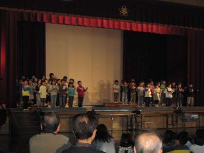 初めての学習発表会。たくさんの人のいる中,緊張もしましたが元気いっぱい発表することができました。