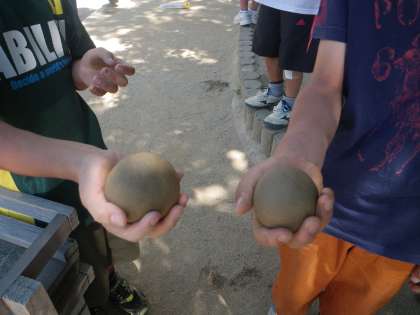 中間休みに外に出てみると,3年生が泥団子を作っていました。