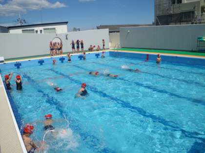 5時間目にはお待ちかねのプール,真夏のような暑さのなか,子どもたち気持ちよさそうでした。