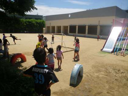 子どもたち,この猛暑の中でも走り回るのが大好きなようです。