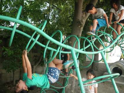 「先生,見て見て!こんな登り方も出来るで!」