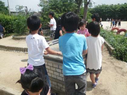 日時計の周りでは今日もけいどろをしている2年生を発見。