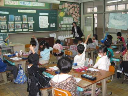 今日は,自分たちの作ったものを紹介し,班の友だちと一緒に遊びました。