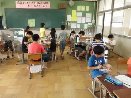 ペットボトルを切るのはかたくて大変だったようです。