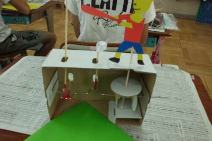 クランクの動きを利用して工作を作っています。
