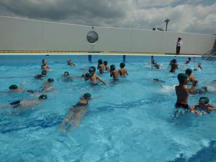もぐったり,水の中で息を吐いたりする遊びも楽しみました。どの子も水中じゃんけんや宝探し(碁石拾い)は大好きで楽しんできました。