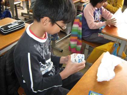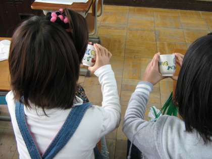 教室で、包んであるお湯のみをひとつひとつ開けていきました。それぞれに歓声が上がり、みんな大切そうに持っていました。