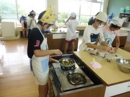 調理クラブでは,なすとトマトとピーマンを使って,ピザを作りました。
